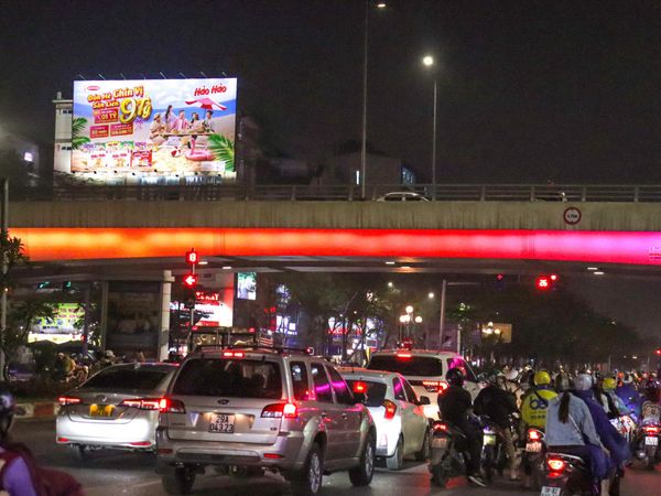 Nổi tiếng là "yết hầu" của thủ đô, Ngã tư Sở là một trong những vị trí bảng quảng cáo Hà Nội đắt giá nhất. Lưu lượng xe cộ và người đi bộ cực lớn, đặc biệt vào giờ cao điểm, biến nơi đây thành "thỏi nam châm" thu hút sự chú ý của mọi nhãn hàng.