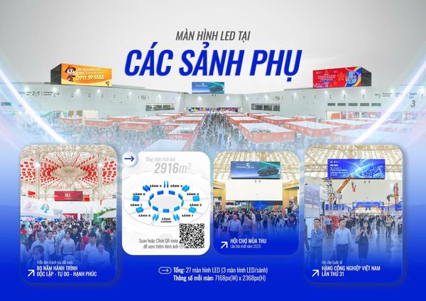 Từ định hướng đó, VINAMA hoàn thiện và đưa vào vận hành hệ thống LED mới tại Vietnam Exposition Center (VEC) Trung tâm Hội chợ Triển lãm Quốc gia. Đây không chỉ là sự gia tăng quy mô hiển thị, mà là bước tiếp nối chiến lược đầu tư vào những không gian có mật độ giao thương cao và nhịp vận hành ổn định quanh năm.